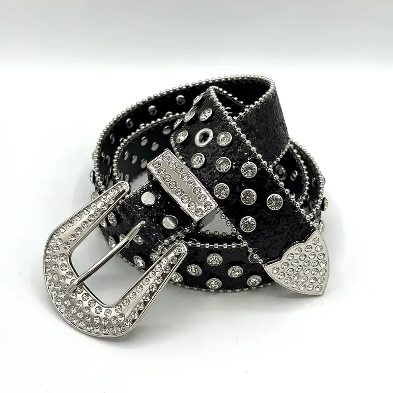 نگین‌های استفاده شده در این محصول با تکنولوژی پرس حرارتی پیشرفته تثبیت شده‌اند تا ریزش نداشته باشند و درخشش کریستالی خود را تحت هر نوری حفظ کنند. سگک بزرگ و مقتدرانه آن با آبکاری رنگ ثابت، تضمین‌کننده این است که شما یک کمربند چرمی باکیفیت در اختیار دارید که استانداردهای بالای سال ۲۰۲۶ را به چالش می‌کشد.