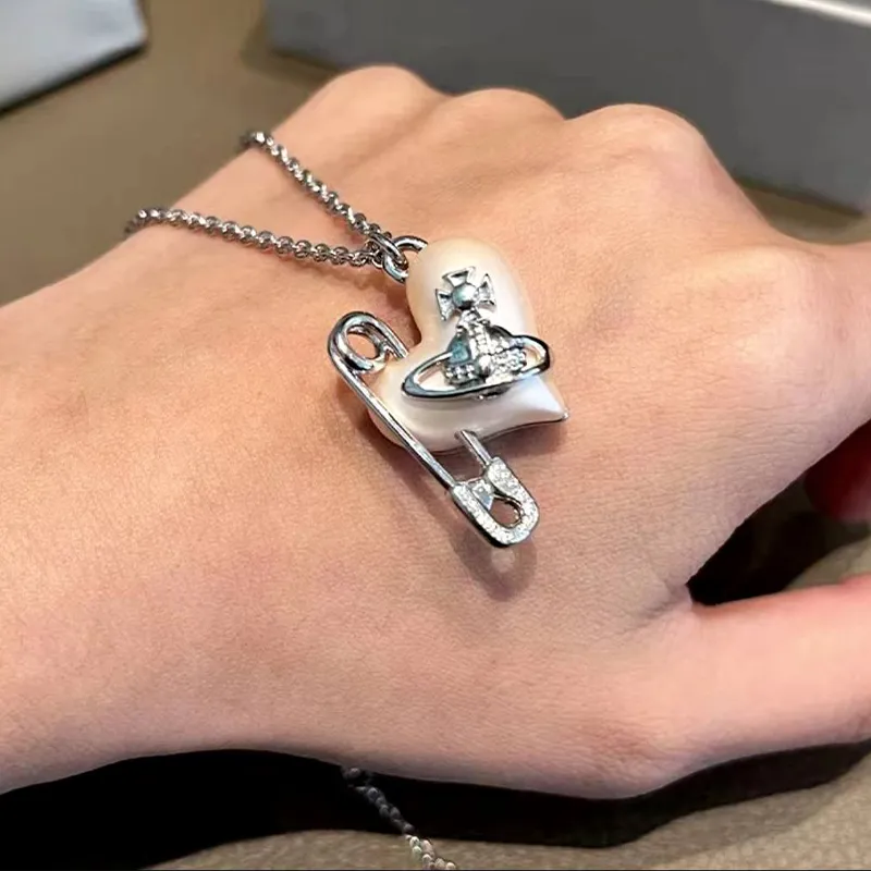 آویز قلب فانتزی در کنار نماد سیاره (اورب) Vivienne Westwood و جزئیات شبیه به سنجاق قفلی (Pin)، حسی از شورش و زیبایی را همزمان به ارمغان میآورد. این گردنبند ترند برای کسانی طراحی شده که میخواهند در عین حفظ ظرافت، امضای منحصر به فرد خود را در استایلشان داشته باشند.